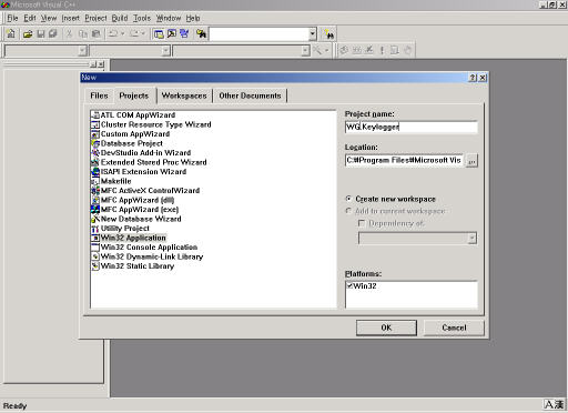 3. ¿À¸¥ÂÊÀÇ Project Name¿¡ WG Keylogger¶ó°í ÀÔ·Â ÈÄ OK ¹öư Ŭ¸¯.